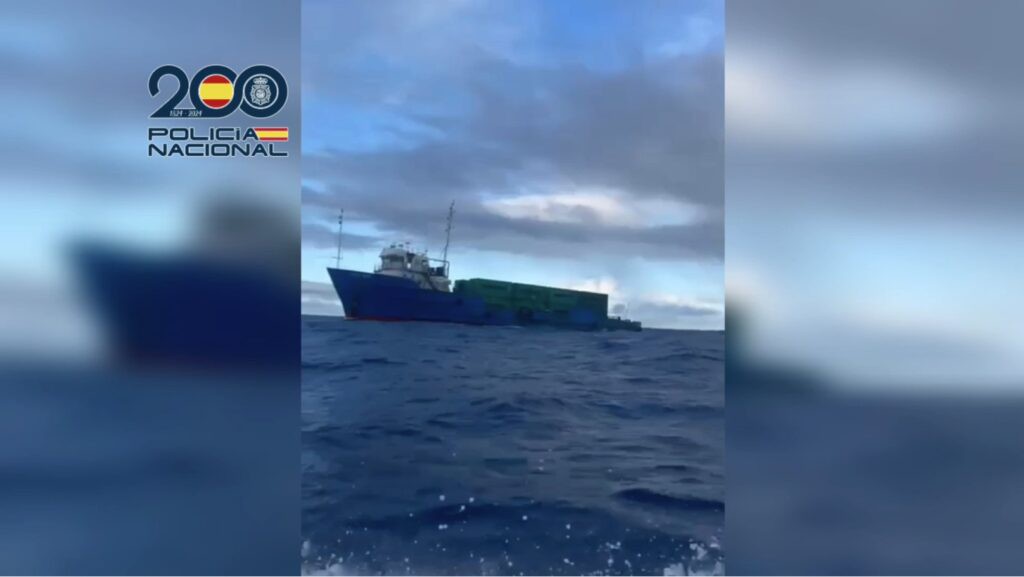 La Policía Nacional, con el apoyo de la Armada Española, abordó un mercante que transportaba 6.500 kilos de cocaína en sus bodegas.