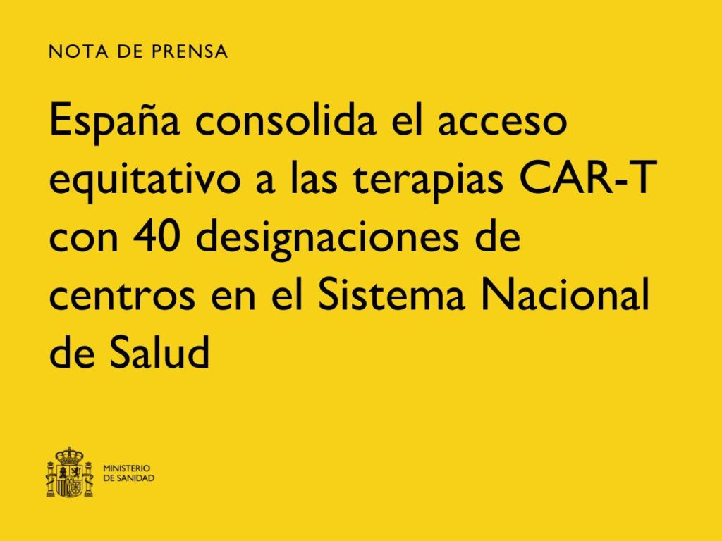 El Sistema Nacional de Salud cuenta con 40 centros designados para la administración de terapias CAR-T, de los cuales 29 están destinados a población adulta y 11 a población pediátrica.