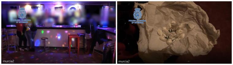 Durante el registro, los agentes se incautaron de numerosas dosis de cocaína perfectamente preparada para su distribución y venta, por lo que también se detuvo al responsable del local, de nacionalidad española, como presunto autor de un delito de tráfico de drogas. El arrestado fue puesto a disposición del Juzgado de Instrucción en funciones de guardia de los de Murcia.